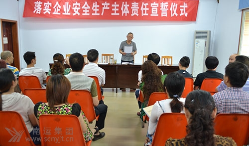 為推動嘉陵分公司2017年“安全生產月”活動順利開展,全面落實企業安全生產主體責任,6月1日,嘉陵分公司召開“安全生產月”活動動員大會暨安全生產主體責任宣誓儀式。會上,分管安全副經理張大軍對“安全生產月”活動進行了安排布置。經理羅平強調,全體從業人員要加強安全生產責任意識和紅線意識,規范安全生產工作全過程的安全管理,對隱患要及時發現,及時消除,有效提高事故預防能力。會上安全生產第一責任人經理羅平進行了宣誓。