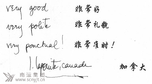 外賓給南運集團駕駛員的感謝留言