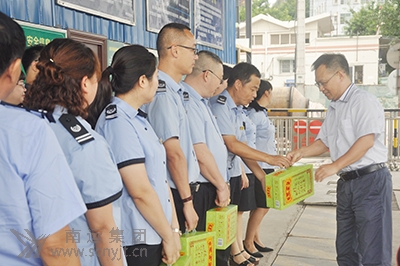 連日來,我市持續高溫天氣“高燒不退”,廣大員工每天奮戰在運輸生產一線非常辛苦。8月28日下午,市總工會黨組書記、常務副主席官曉林等一行在集團公司黨委副書記、工會主席胡仕杰陪同下,深入南充汽車客運站,看望慰問高溫酷暑下堅守崗位的一線員工。 官曉林一行為堅守崗位的一線員工,送上了藿香正氣液、毛巾、香皂及清涼飲料等防暑降溫物品。一句句“你們辛苦了,謝謝大家!”充分表達了市總工會領導對員工們在高溫下堅守崗位的深情厚愛。同時叮囑大家要做到勞逸結合,注意防暑降溫,保護身體健康。他說:“道路旅客運輸工作很辛苦、很光榮,非常重要。大家用辛勤的汗水換來了市民出行的便捷。希望大家要始終堅持安全第一,旅客第一,服務第一,進一步做好旅客運輸組織和服務保障工作,確保旅客走得安全、走得順利、走得滿意。” 據悉,市總工會此次共給南運集團發放200份防暑降溫物品及清涼飲料,在炎炎夏日給員工們送來聲聲問候,帶來絲絲涼意,極大地鼓舞了一線員工的士氣,激發了一線員工的熱情,大家紛紛表示,一定不辜負上級領導的關懷愛護,繼續發揚戰高溫,斗酷暑的精神,以更高的工作熱情,全力以赴投入客運工作之中,為市民安全出行做出新的更大的貢獻。 (王洪)
