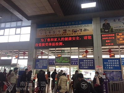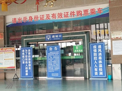 車站候車室電子顯示屏播放的防疫宣傳標語