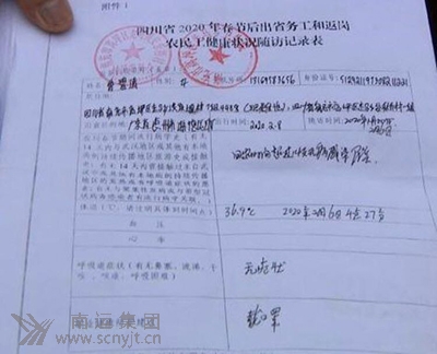 每位乘客的《四川省2020年春節后出省務工和返崗農民工健康狀況隨訪記錄表》