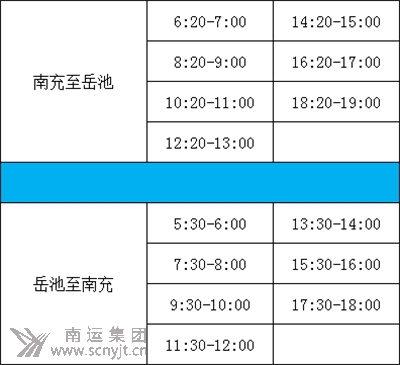 南充市和岳池縣的其他固定上下車點請查看地圖下方的“推薦上車點”。 四、班次時間 南充至岳池定制客運線路往返共設14個班次,詳情如下: