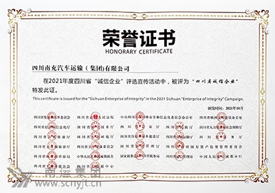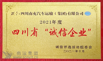 同創企業信用輝煌 共享南運誠信榮光 南運集團再次榮獲四川省“誠信企業”榮譽稱號