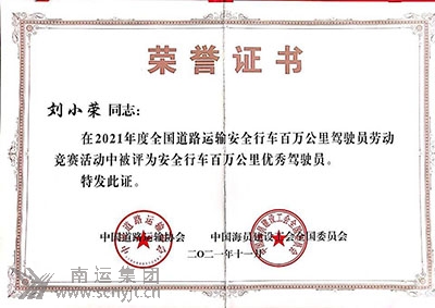 南運集團3名駕駛員榮獲“2021年度全國道路運輸安全行車 百萬公里勞動競賽優秀駕駛員”稱號