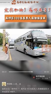 9月14日《微高坪》以《宜賓加油!高坪來(lái)了!》為題對(duì)高坪分公司南運(yùn)大巴運(yùn)送100名高坪區(qū)醫(yī)務(wù)人員馳援宜賓進(jìn)行了視頻播報(bào)。