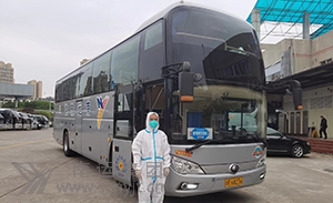 營(yíng)山分公司大巴運(yùn)送醫(yī)務(wù)人員馳援南充抗疫。