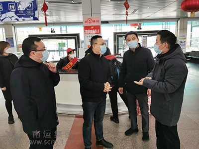 共青團南充市委書記許栩(左二),到南充汽車客運站實地調研察看志愿者服務活動開展情況。