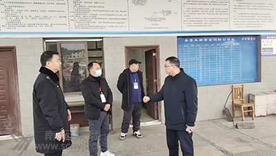 省應(yīng)急管理廳煤炭管理處處長(zhǎng)陳建春(右一)在蓬安汽車客運(yùn)站督導(dǎo)春節(jié)安全生產(chǎn)。