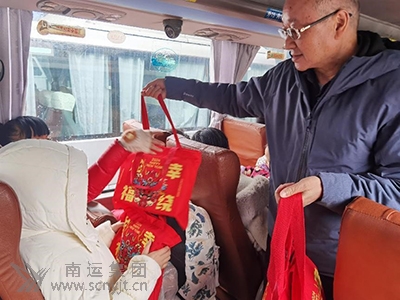 南充市交通運輸局一級調研員張世民向旅客贈送春運禮包