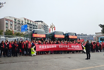 一進臘月,年味就漸漸濃了起來,很多在外務工的農民工朋友也將回家過年提上了議事日程,為幫助解決在外務工農民工購票難的問題,廣東省佛山市南充商會與南充市工商聯共同發起了“關愛農民工專項行動”,由南充市工商聯指派南運集團高速客運分公司派出3臺客車前往廣東省佛山市接南充籍的農民工回家過年。 接到運輸指令,南運集團高速客運分公司非常重視,派出黨員先鋒隊駕駛員任勇帶領駕駛技能過硬、思想覺悟高的5名駕駛員,駕駛3臺55座豪華大巴車去執行這一光榮而又艱巨的任務。1月27日下午,3臺大客車順利抵達廣東省佛山市,受到了佛山市南充商會的熱情接待。 28日上午,當返鄉的農民工朋友們看到久違的川R車牌,聽到駕駛員熟悉的南充鄉音,將回家的渴望宣泄得淋漓盡致。 上午11點30分,154名南充籍農民工在佛山市南充商會工作人員的引導下,有序登上家鄉派來的專車,踏上了回家的旅途。坐在家鄉的車上,老鄉們開懷暢言,都覺得春運車票很難買,能夠坐上家鄉派來的專車,感覺很溫暖、很踏實。 1月29日下午1點50分,高速客運分公司3臺大客車安全到達南充汽車客運站,農民工朋友們的情感再次受到了沖擊,南充市嘉陵區農民工服務中心工作人員來到車站舉行了熱烈的歡迎儀式,迎接親人們回家過年,并貼心地送上了過年禮包。返鄉的西充縣東岱鄉農民工梁清華感動萬分,他說:“政府和商會派車來廠里接我們,讓我們不用到處去買票就可以免費直接回家,到家了還來迎接我們,還送了過年禮物,讓我們太感動了,很有歸宿感!” (高速客運分公司 朱玲)