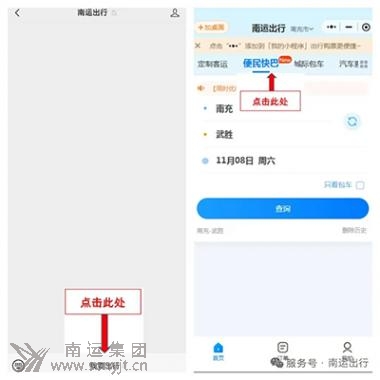 2.點擊微信公眾號頁面下方“我要出行”,再選擇“便民巴士”。