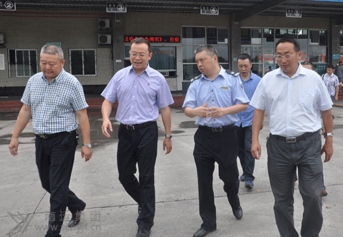 遂寧市交通運輸局黨委委員、副局長于禮軍(左二)檢查南充汽車客運站的防汛工作