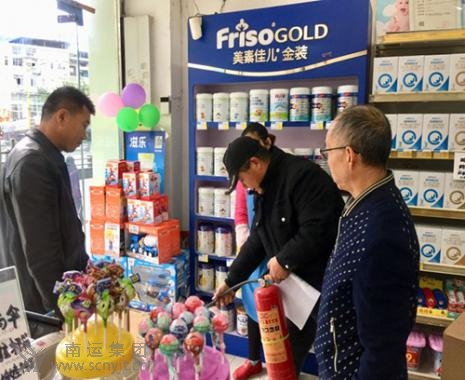 鴻運實業分公司消防安全員為經營戶講解滅火器的正確使用方法