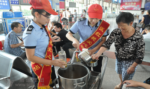 盛夏時(shí)節(jié),恰值每年暑運(yùn)高峰,在南充汽車客運(yùn)站內(nèi),數(shù)千旅客川流不息,奔波于各自的行程中。為做好旅客乘候車過(guò)程中站務(wù)服務(wù)工作,南充汽車客運(yùn)站組織“匡紅艷愛(ài)心班”自愿者服務(wù)隊(duì)員,利用業(yè)余時(shí)間熬煮綠豆南瓜湯,堅(jiān)持每天送到候車大廳、售票大廳,送到每一位需要的旅客手中。她們用愛(ài)心為候車的旅客送上了一絲絲清涼,一些旅客見(jiàn)此情景深受感動(dòng),一位趕乘蓬溪班車的旅客在連續(xù)喝了三杯后感慨地說(shuō)到“沒(méi)想到你們做得這么好,在其他地方我真還沒(méi)有見(jiàn)到過(guò)”。并問(wèn)道“你們是每天都送綠豆湯嗎”?愛(ài)心班的姐妹們回答到:“在夏日伏天中我們每天都要給旅客送到現(xiàn)場(chǎng),歡迎你下次來(lái)站飲用”。這位旅客連聲稱贊地說(shuō)“謝謝你們,有時(shí)間我一定在網(wǎng)上宣傳你們”。“不用,只要你們滿意就是對(duì)我們最好的肯定”。為旅客在候車的時(shí)候解除暑熱,帶來(lái)涼意,是愛(ài)心班姐妹們的心愿。當(dāng)志愿者們看到旅客喝著綠豆湯,倦意漸消的情景,她們倍感欣慰。她們知道在這“火熱”的盛夏里,送綠豆湯的小小舉動(dòng),溫暖了旅客們的心。 (張蜀慧 王洪)