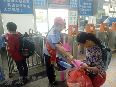 為貫徹落實全省農民工服務平臺建設電視電話會議精神,南充汽車客運站黨支部、工會積極響應,多措并舉,堅持開展“情滿旅途”活動,不僅春運做好農民工返鄉返崗運輸服務保障工作,而且始終堅持日常為廣大農民工出行獻愛心送溫暖。 在車站售票廳志愿者服務點“匡紅艷愛心班”專門設立了“農民工服務臺”,為返鄉農民工和過往旅客提供服務,發放各類法律、法規的政策宣傳冊和宣傳傳單,促進農民工朋友們增強維權意識和安全意識,從而對新形勢下黨和國家的便民舉措有了更深了解和認識。 在售票廳、候車廳分別設立了“農民工專用售票窗口”和“農民工專用綠色檢票通道”、“愛心驛站”。工作人員為農民工提供現場引導網絡購票、取票、檢票、進站乘車等各項服務,使農民工朋友們返鄉出行更加方便。同時,為了使農民工朋友們感受到家的溫暖,還在站內免費提供開水、愛心雨傘、便民箱、藥箱、針線包和舒適的軟座椅。這些便民舉措,使廣大農民工和旅客們充分感受到優質服務帶來的便捷和溫馨,真正體會到站如到家的親切感。 (彭慶紅)
