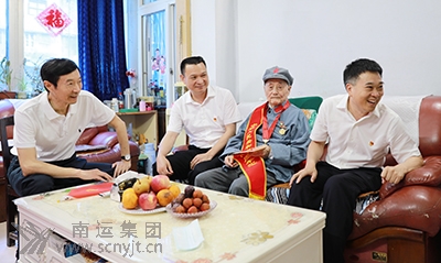 市交通運(yùn)輸局黨委書(shū)記、局長(zhǎng)楊積義(右一)率局黨委委員,副局長(zhǎng)徐小斌(左二)一行在集團(tuán)公司黨委書(shū)記、董事長(zhǎng)、總經(jīng)理王希平(左一)陪同下,看望慰問(wèn)南運(yùn)集團(tuán)老紅軍曹守成。
