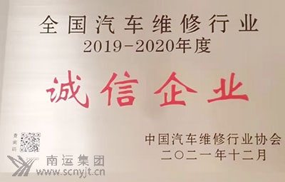 南運集團精誠汽車維修分公司榮獲 “全國汽車維修行業誠信企業”