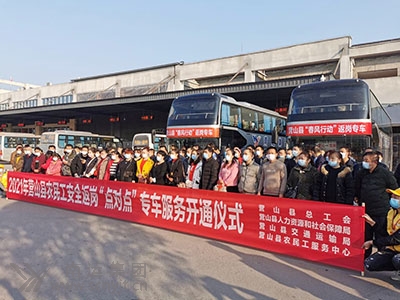 2021年營山縣農民工安全返崗“點對點”專車服務 開通儀式在營山汽車客運站舉行