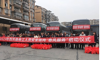 回家時歸心似箭,離家時依依不舍,車站的站臺見證了多少的聚散離別,也承載了太多的希望和夢想。春節假期結束,迎來了節后返崗高峰,2月20日上午由西充縣農民工服務中心牽頭,縣運管局、南運集團西充分公司聯合在西充汽車客運中心舉行了2024年西充縣務工人員安全返崗“春風服務”啟動儀式。 啟動儀式上,縣農民工服務中心副主任熊子揚傳達了縣委、政府對外出務工的兄弟們的關懷和祝福,并親切的叮囑大家:一要安全,你們都是家庭的頂梁柱,注意自身和他人的安全;二要學習,虛心向發達城市學習專業的管理和技術,提升自身競爭力;三要回報家鄉,將先進的管理經驗和資金技術帶回家鄉投資興業。縣農民工服務中心貼心的為大家準備了方便面、牛奶、礦泉水、牙刷、牙膏等愛心大禮包。 隨后,西充汽車客運中心4臺54座干凈整潔的南運“春風服務”返崗專車載著200余名外出務工人員帶著對親人的牽掛和對美好生活的向往再次踏上離別的豪華大巴,重復著昨天的務工故事。 春運期間,西充汽車客運中心認真研判市場,合理的運輸組織,將“金通工程”和城鄉公交車有效結合,形成“出家門、上車門、進廠門”、“點對點”的運輸服務,滿足了旅客安全、快捷的出行需求,有效的減少了客源流失。 截止2月20日,西充汽車客運中心“春風服務”農民工返崗共計發班95趟次,運輸旅客5035人次。 (西充分公司 趙燕妮)